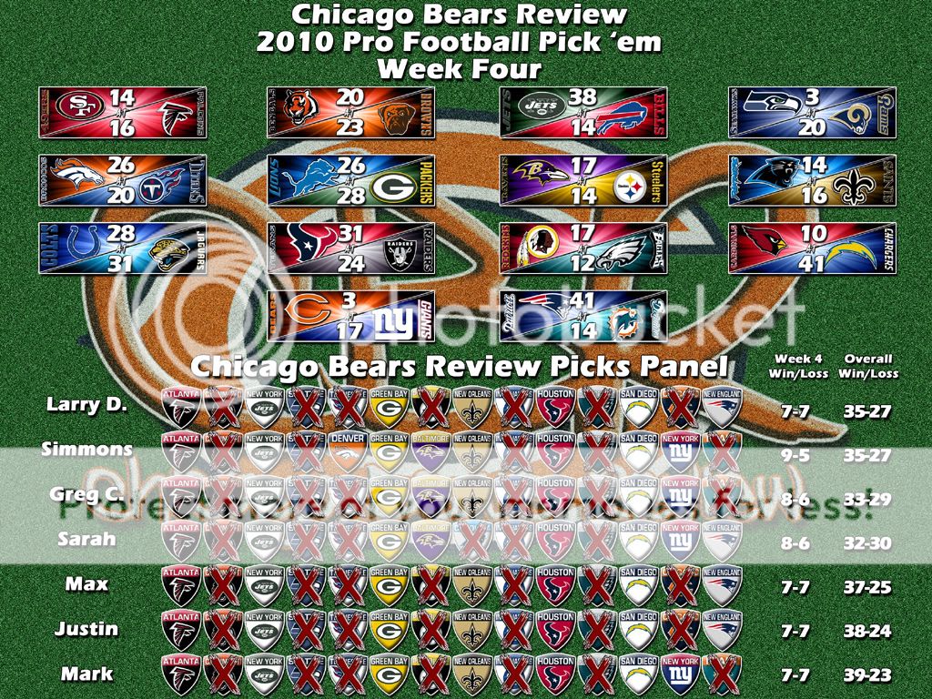 Here is the Week Four Results page to see the rest of the picks and here is the Picks Panel Standings