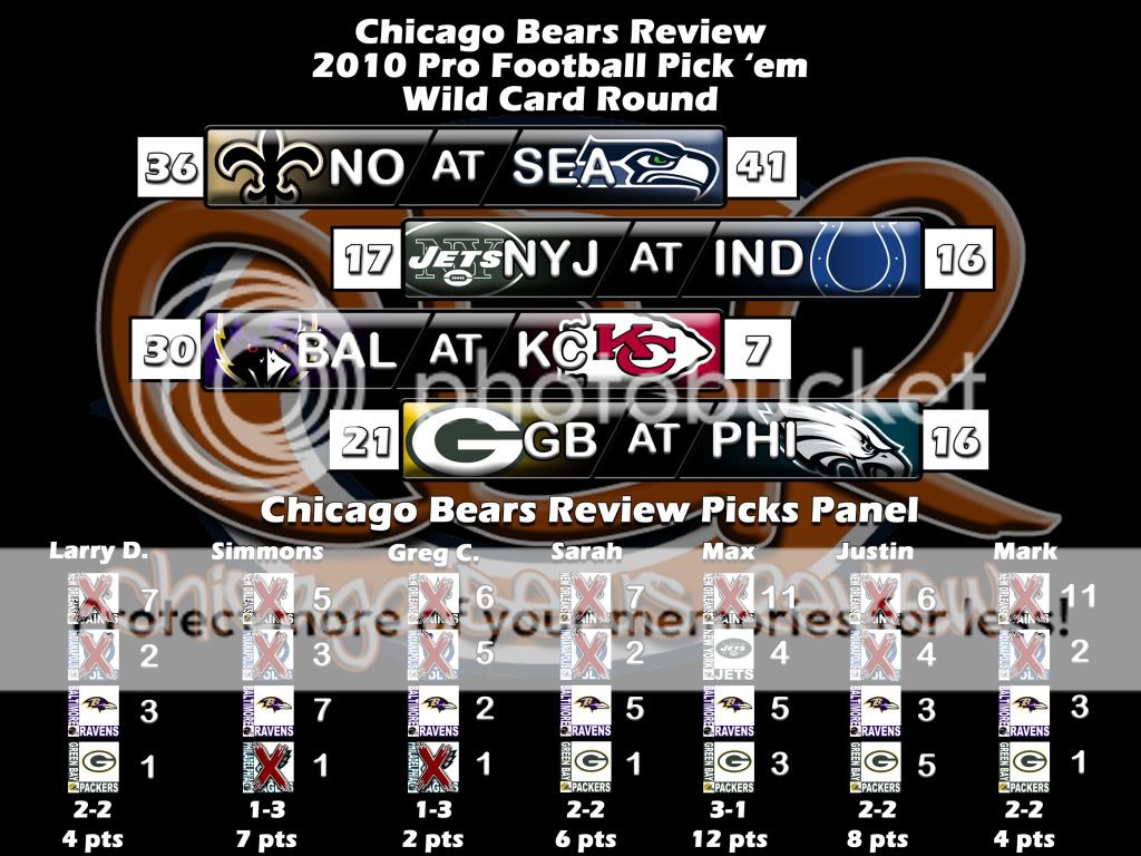 And here is the Picks Panel Standings graphic for the first round of the post season.