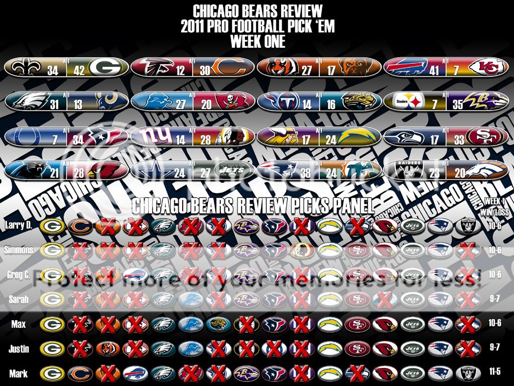 Here is the Week One Results Page and the Picks Panel Standings graphic.