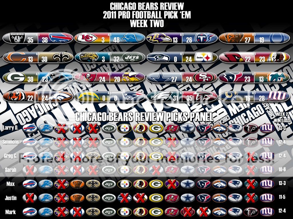 Here is the Week Two Results page and the Picks Panel Standings graphic.