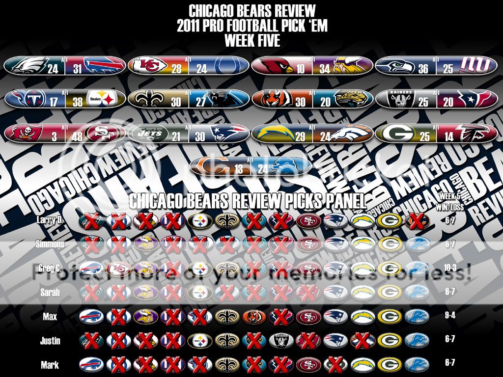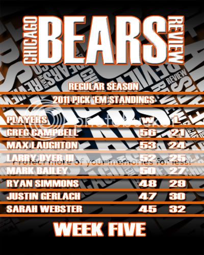Here is the Week Five Results page and the Picks Panel Standings graphic.