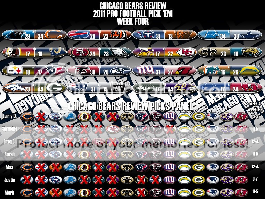 Here is the Week Four Results page, along with our Picks Panel Standings graphic.