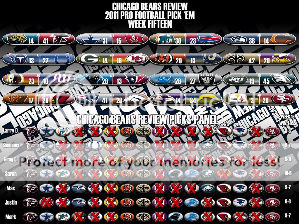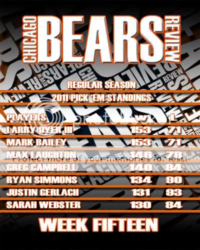 Here is the Week Fifteen Results page and the Picks Panel Standings graphic.