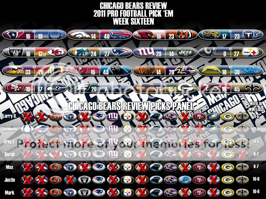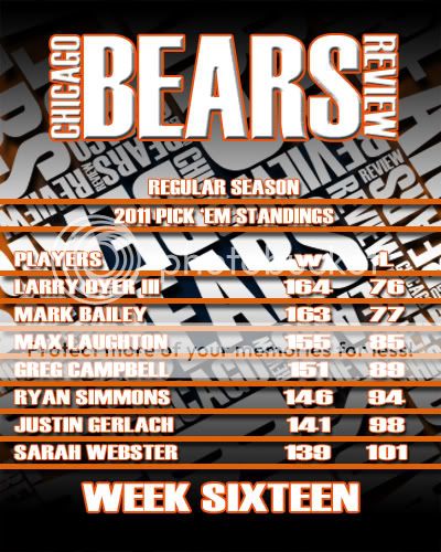 Here is the Week Sixteen Results page and the Picks Panel Standings graphic as well.