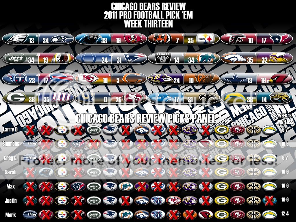 Here is the Week Thirteen Results page and the Picks Panel Standings graphic.