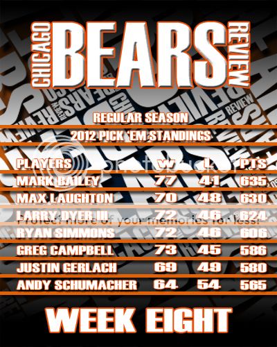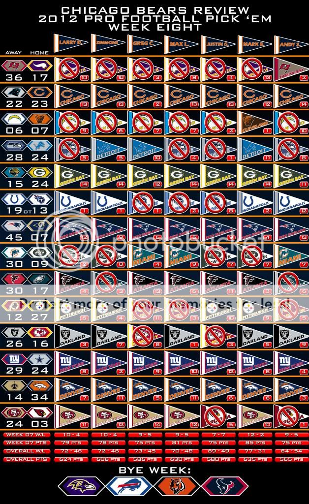 Here is the Week Eight Results page and the Picks Panel Standings graphic.