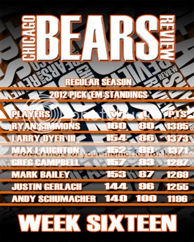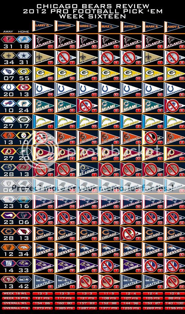 Here is the Week Sixteen Results page and the Picks Panel Standings graphic.