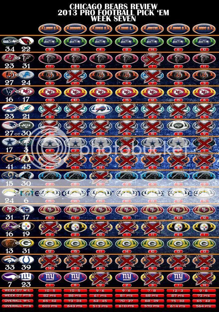 Week Seven Results Page and the Picks Panel Standings graphic.